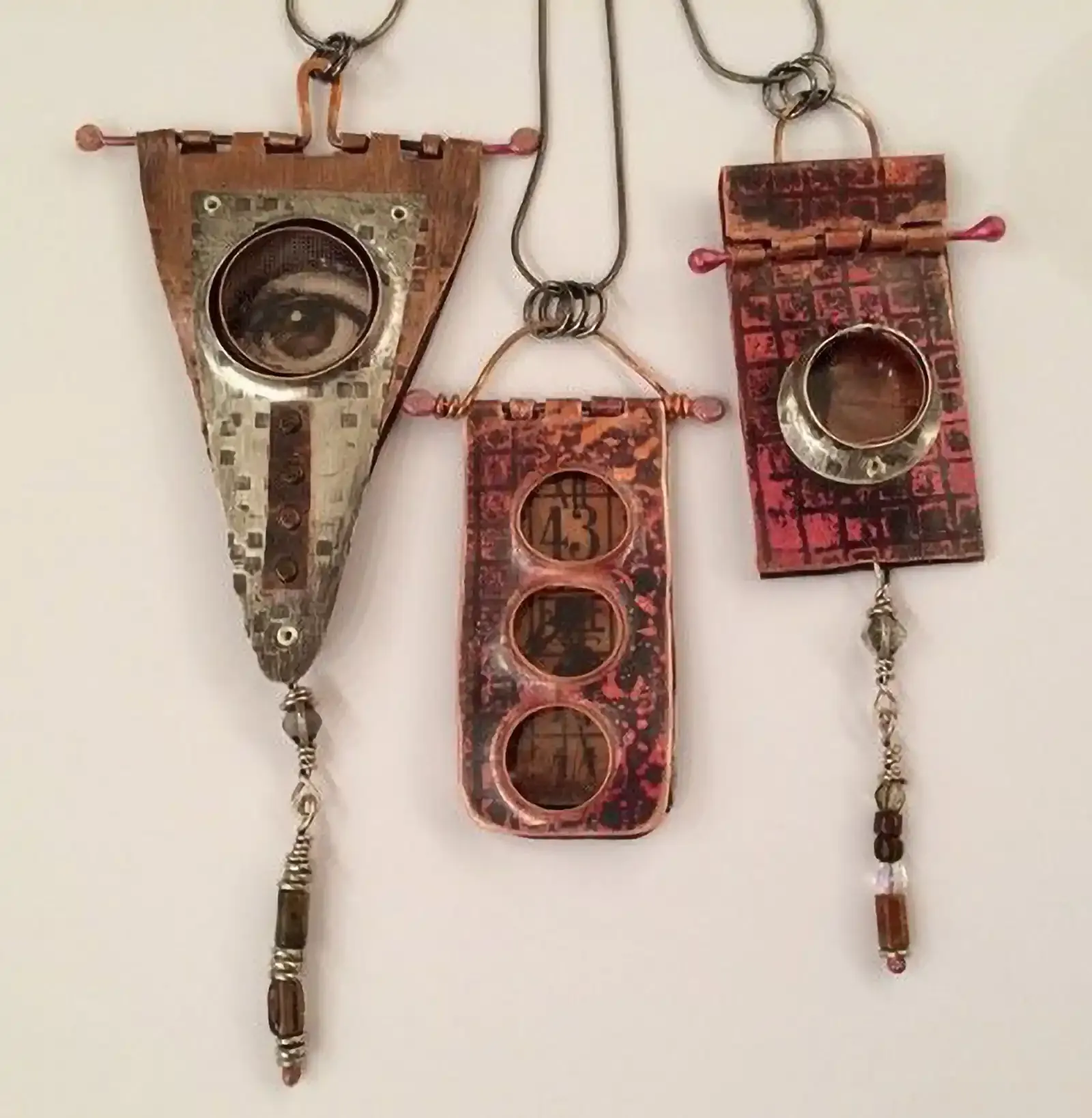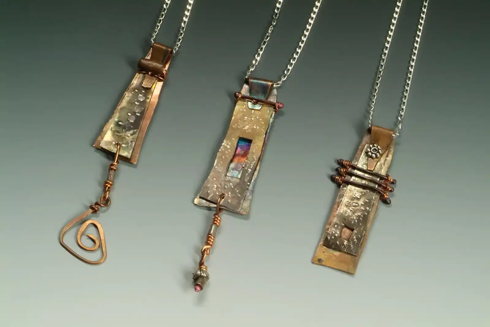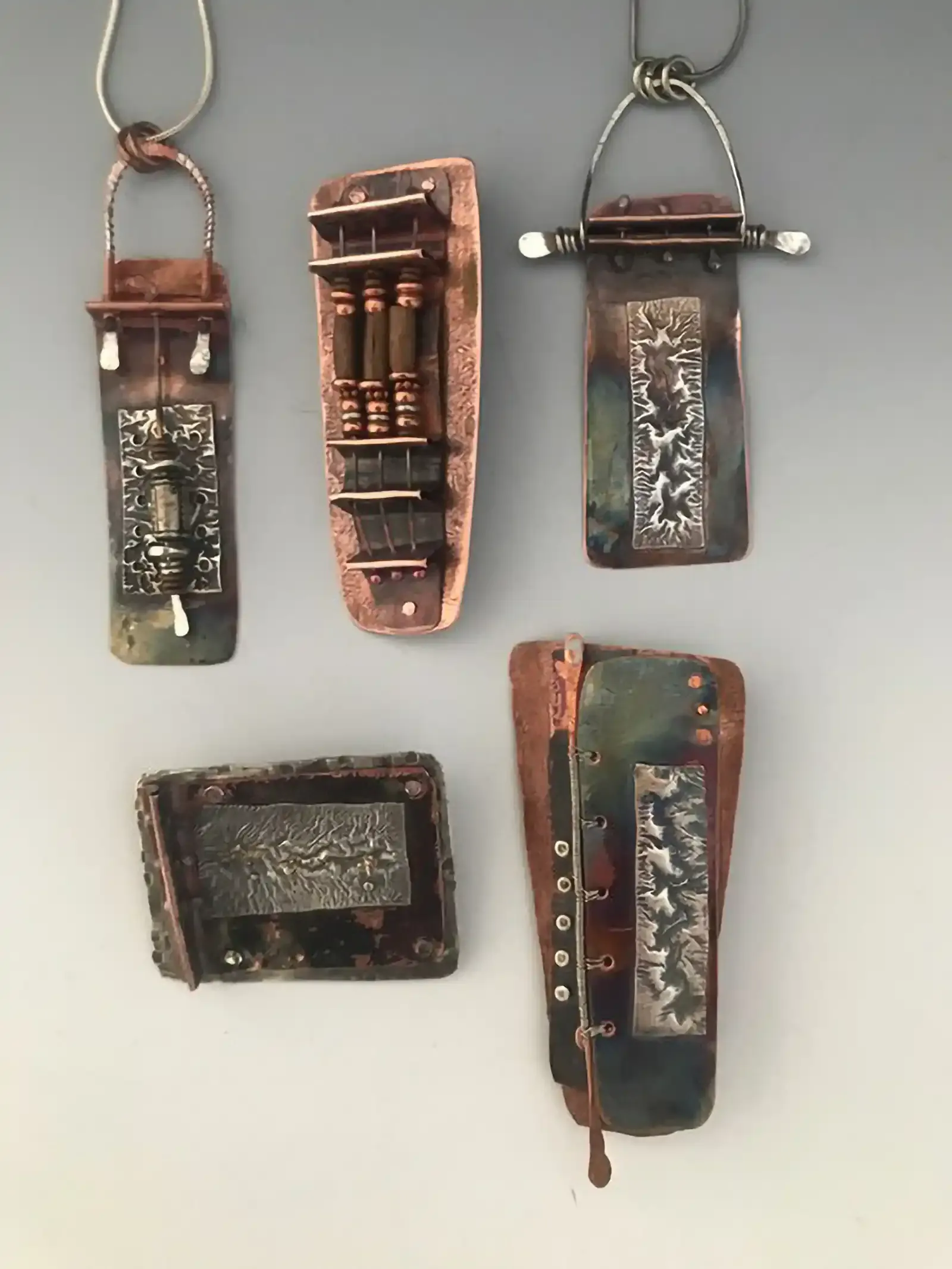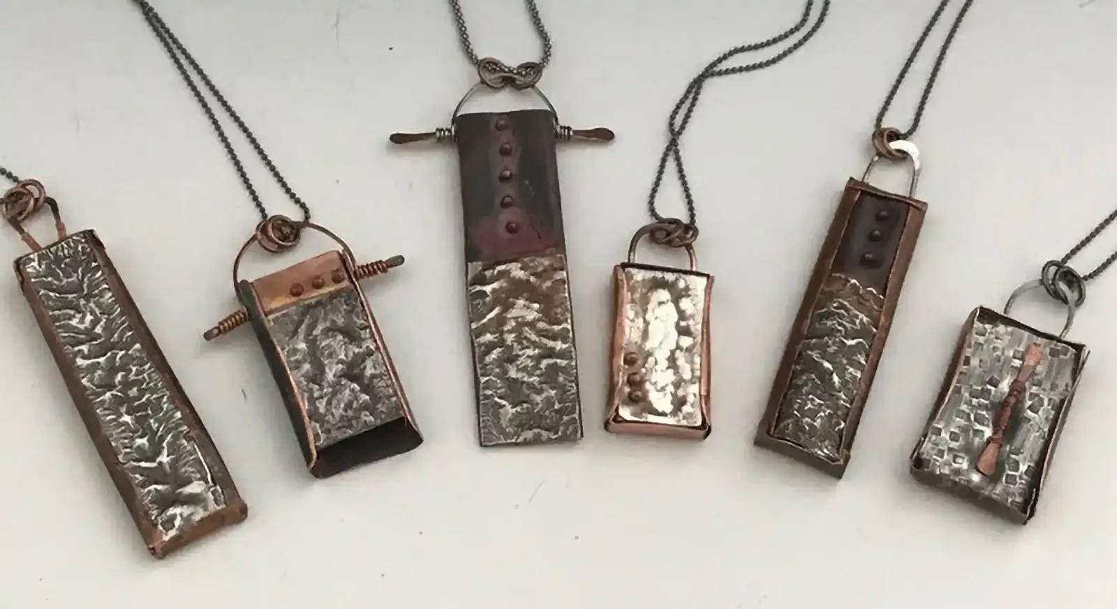 Learn to incorporate found items into your jewellery creations, allowing the pieces to become narrative and personal. A variety of cold connections and weaving techniques will be taught, instead of soldering, to connect and create the works. Copper and some silver sheet metal will also be incorporated for accent, and a variety of other materials including found objects, art paper and waxed linen, will add that personal touch as you construct your pieces.